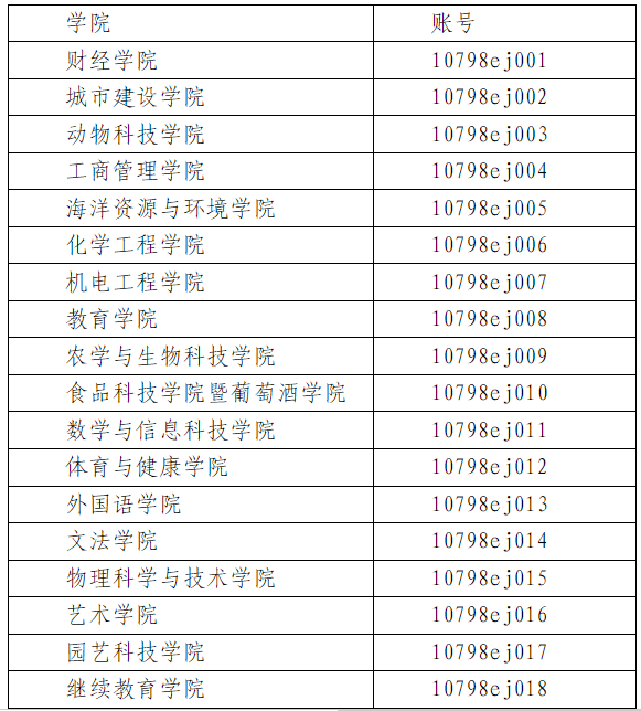 各学院的账号已分配完毕,详见下表1,可使用学院联系人员对应手机/邮箱通过登录页【重置密码】获取登录密码。