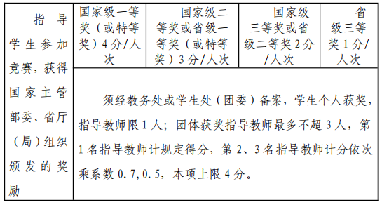指导学生获得市厅级及以上赛事一、二、三等奖或金、银、铜奖的指导教师,学生获得市厅级(不含校级)奖励的第一指导教师,学生获得省级奖励的前二名指导教师,学生获得国家级奖励的前三名指导教师。