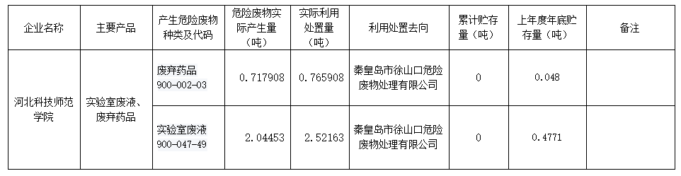 秦皇岛市危险废物产生单位信息公开表(2023年1-12月)