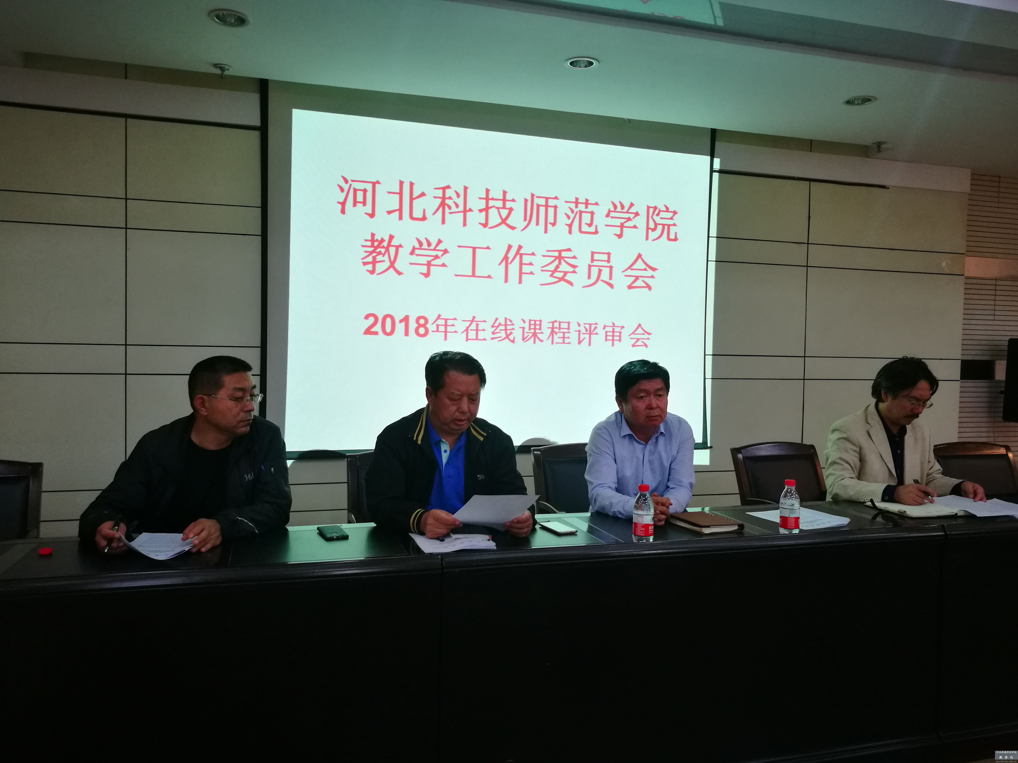 本次会议主要是评审在线开放课程,并就审核评估整改工作、专业带头人建设工作及教学督导等相关工作进行通报和布置。会议首先进行在线开放课程评选工作,教务处戴维副处长介绍了在线课程立项的背景、本次立项的申报情况及评审标准和要求。各委员在听取各在线开放课程主持人的PPT汇报的基础上,依据评选标准进行评定。