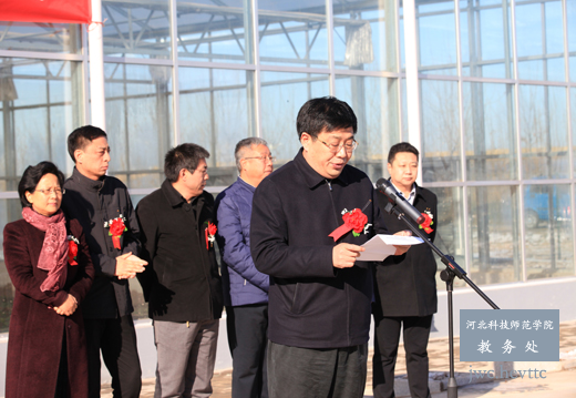 2016年11月22日,我校乐亭综合试验站揭牌仪式在唐山绿昕农业开发有限公司隆重举行。我校党委常委李佩国、副校长杨越冬,乐亭县委常委、副县长兼农工委书记张国勇,乐亭县委农工委常务副书记裴建忠出席了揭牌仪式。乐亭县政府办公室、农业办公室、唐山绿昕农业开发有限公司相关负责人,我校科研处、教务处、园艺科技学院负责同志参加了揭牌仪式。