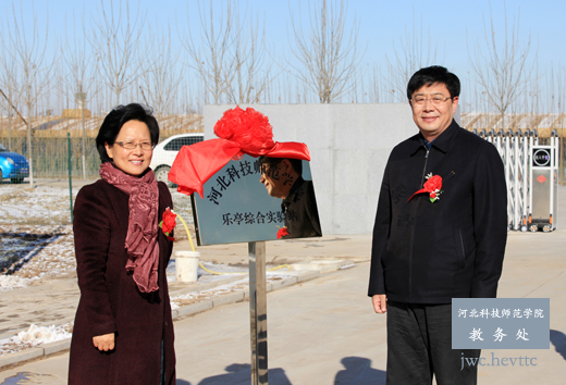 副校长杨越冬与乐亭县委常委、副县长兼农工委书记张国勇为综合实验站揭牌
