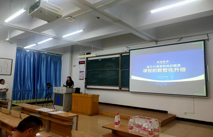 本次培训交流活动学校特邀超星研究院高级培训师曹丽博担任主讲。曹老师详细介绍了如何利用知识图谱、AI助教、资源共享、互动交流等方式来构建智慧课程。通过现场演示的方式,演示了具体操作流程,并结合具体案例,展示了教学中的实际应用效果。