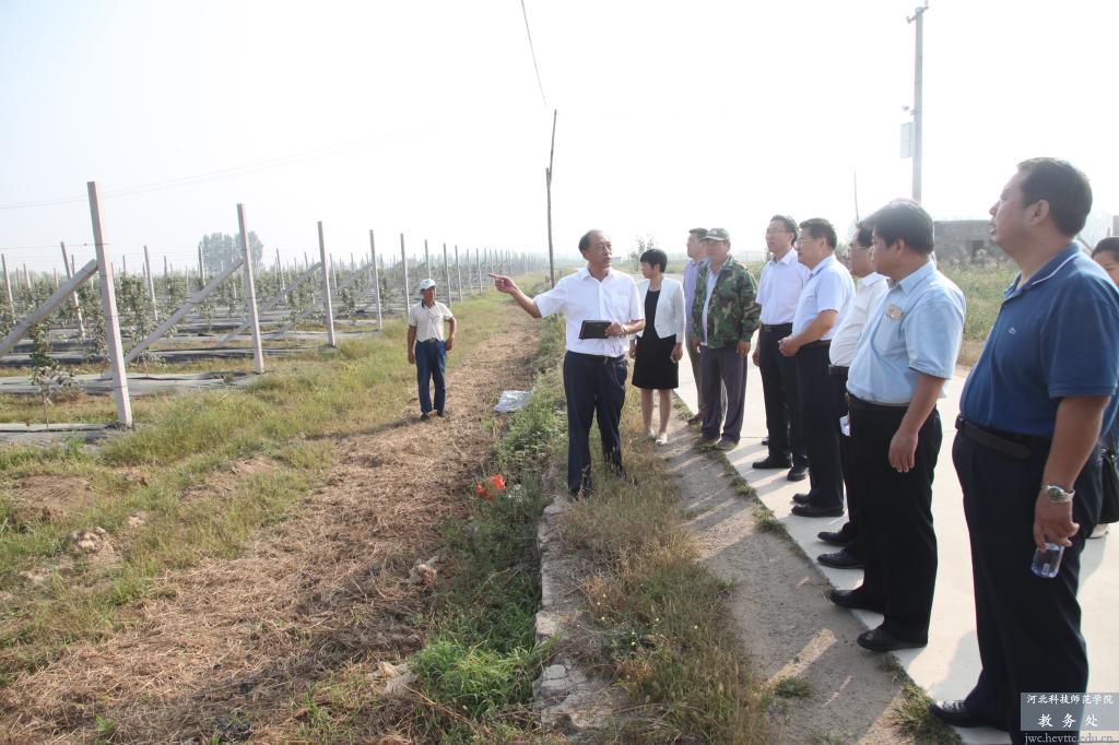 2017年9月26日,河北省普通高校转型发展试点中期评估组成员在校长王同坤、校党委常委李佩国和相关部门、院系负责同志的陪同下,赴中保绿都农林基地、施各庄农学类专业实践基地、中粮华夏长城葡萄酒实践基地等校外实习实训基地和产学研合作单位以及我校生命科技学院标本馆、动物科技学院、园艺科技学院、食品科技学院、机电工程学院等校内实训实验室进行了实地考察。